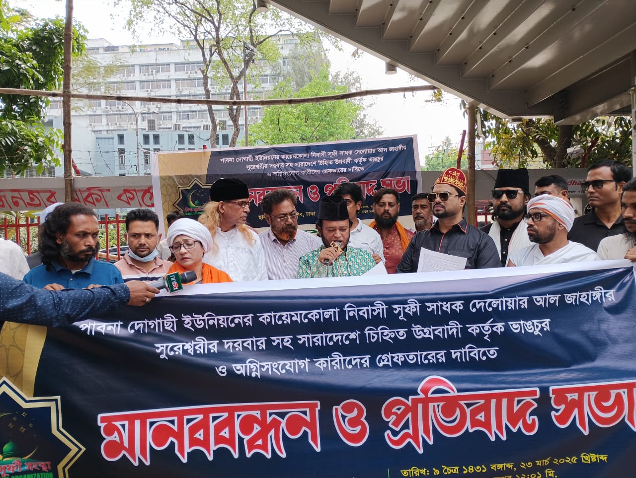 বিশেষ প্রতিবেদকঃ জাতীয় প্রেসক্লাব, ঢাকায় “বিশ্ব সুফি সংস্থা”র উদ্যোগে পাবনা জেলার দোগাছী কায়েমকোলা নিবাসী সুফি সাধক দেলোয়ার আল জাহাঙ্গীর সুরেশ্বরীর