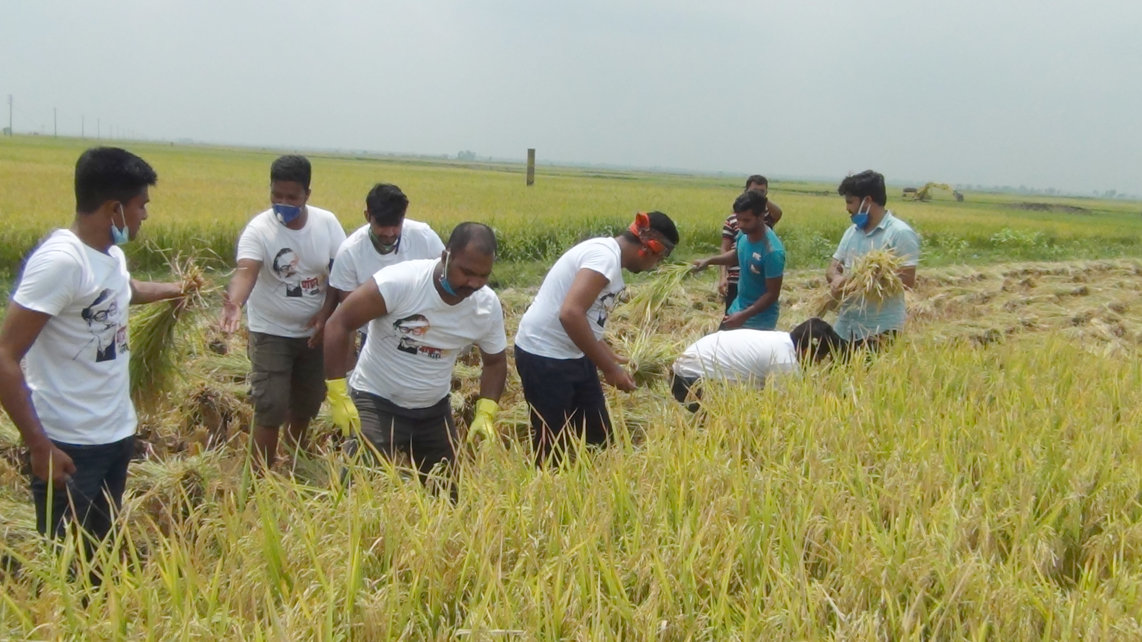 কৃষকের পাকা ধান কেটে বাড়ি দিয়ে এলো নওগাঁ জেলা  ছাত্রলীগ