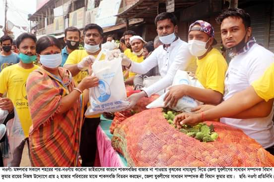 নওগাঁয় কর্মহীনদের মাঝে যুবলীগ নেতা বিমানের সবজি বিতরণ