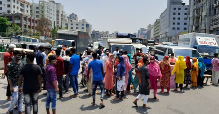 বকেয়া বেতনের দাবিতে রাজধানীতে সড়ক অবরোধ করেছে পোশাক শ্রমিকরা