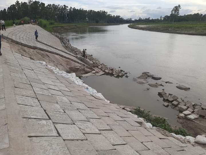 বছর না ঘুরতেই ব্লকসহ করতোয়া নদীর বামতীঁর সংরক্ষণ বন্যা নিয়ন্ত্রণ বাঁধ ধসে যাচ্ছে