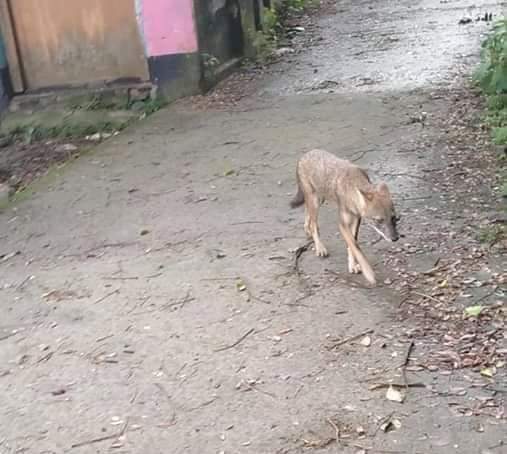 খাদ্যের সন্ধানে দিনের বেলায় সড়কে ঘুরছে শিয়াল