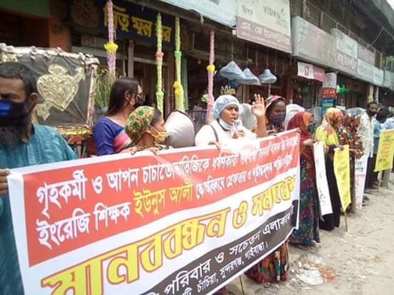 ধর্ষণকারী ইউনুছ আলী গ্রেফতার ও শাস্তির দাবীতে গাইবান্ধায় মানববন্ধন