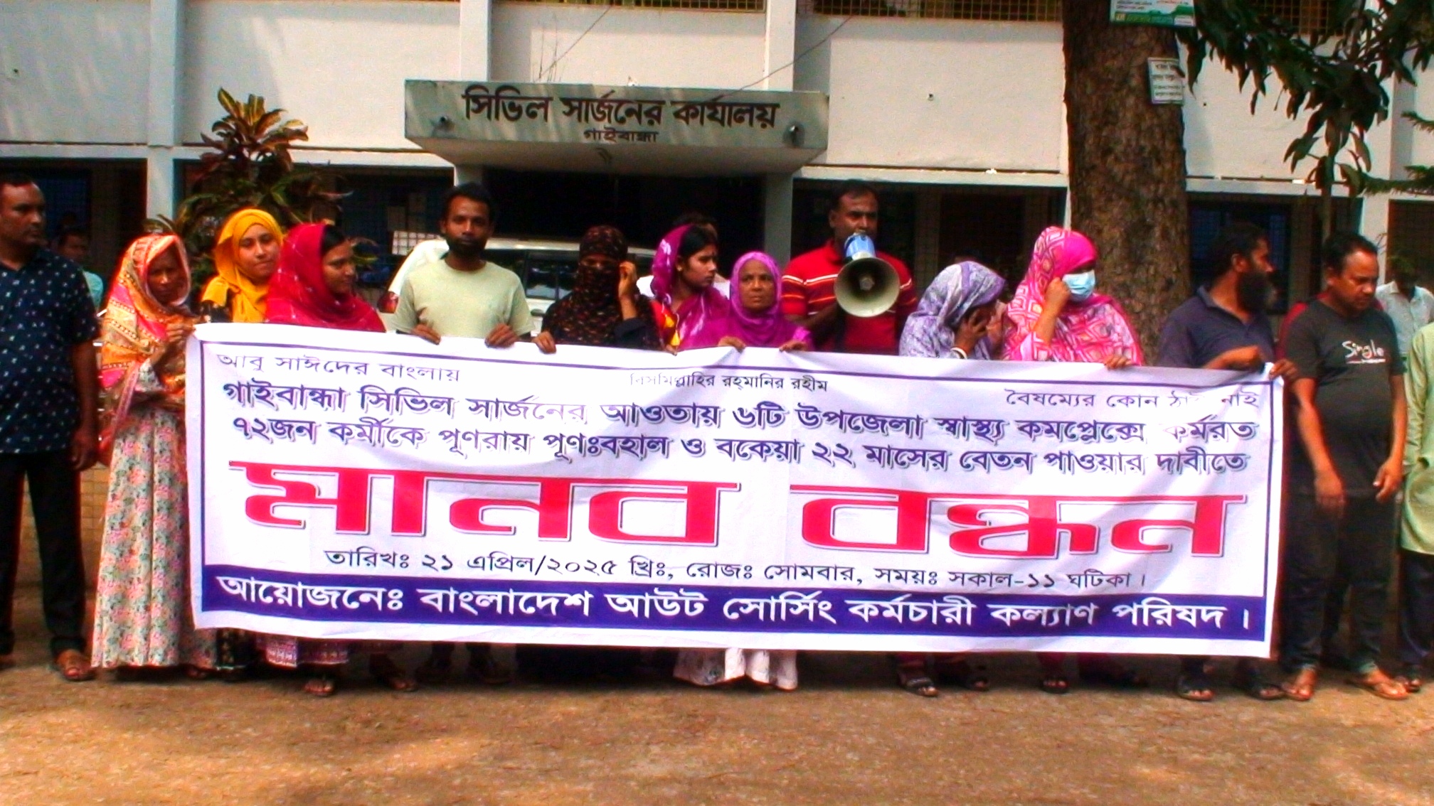 ২২ মাসের বকেয়া বেতন ও পূনঃবহালের দাবিতে গাইবান্ধা আউটসোর্সিং কল্যাণ পরিষদের মানববন্ধন